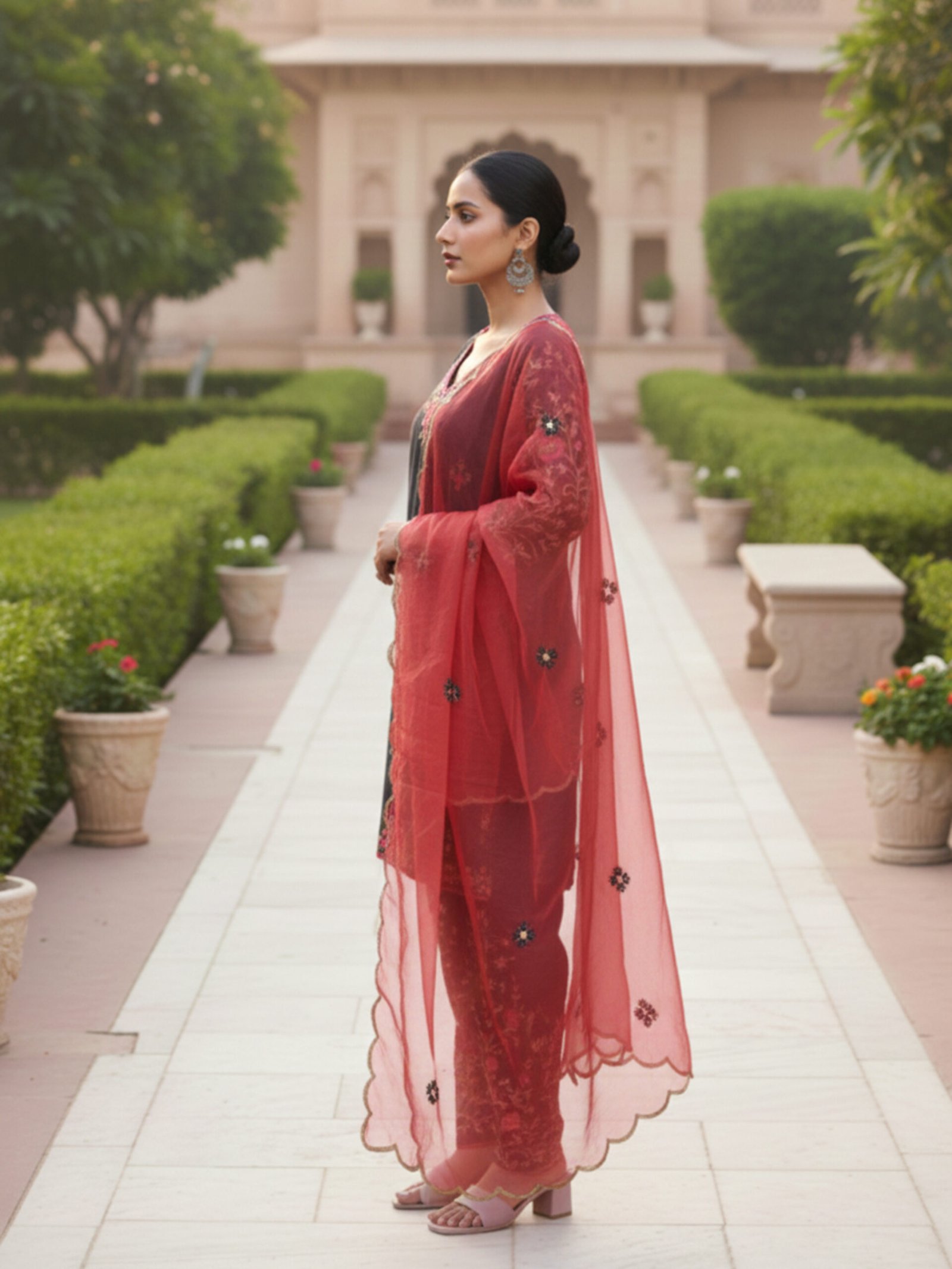 Scalloped Detailing: Hand-cut scalloped borders on the dupatta and kurta edges.