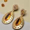 Traditional gold plated cubic zircornia studded brass big stone drop earring