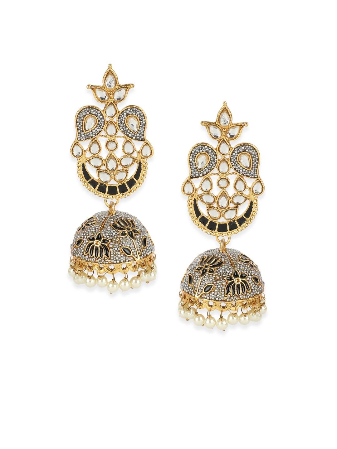 Traditional Gold Plated Detailed Work With Enamelled Texture-Onesize-Black, secured with post and back closure