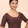 Women Round-Neck Stretchable Saree Brown Blouse